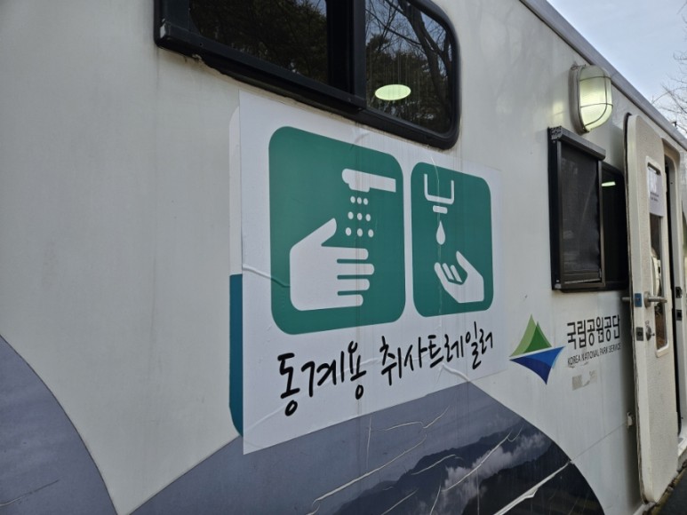 화장실보다는 따뜻한 물이 나오기 때문에 동계욘 취사트레일러에서 씻으세요!