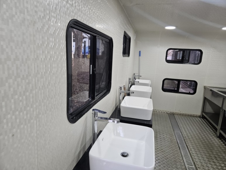 트레일러 안에는 히터가 설치되어 있어서... 조금이나마 따뜻하고 개수대, 세면대가 설치 되어 있어요